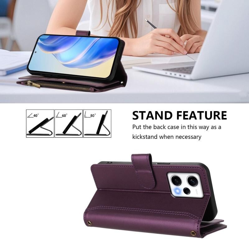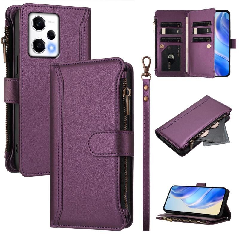 For Redmi Note 12 Pro 5G Global / Poco X5 Pro Magnetic Closure 9 Card Slots Zipper Leather Case with Hand Strap(Purple)