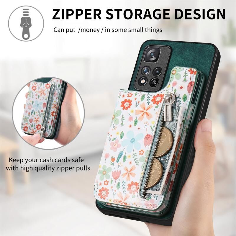 Για Redmi Σημείωση 12 Pro 5G Ρετρό ζωγραφισμένο φερμουάρ πορτοφόλι πίσω τηλέφωνο υπόθεση (πράσινο)