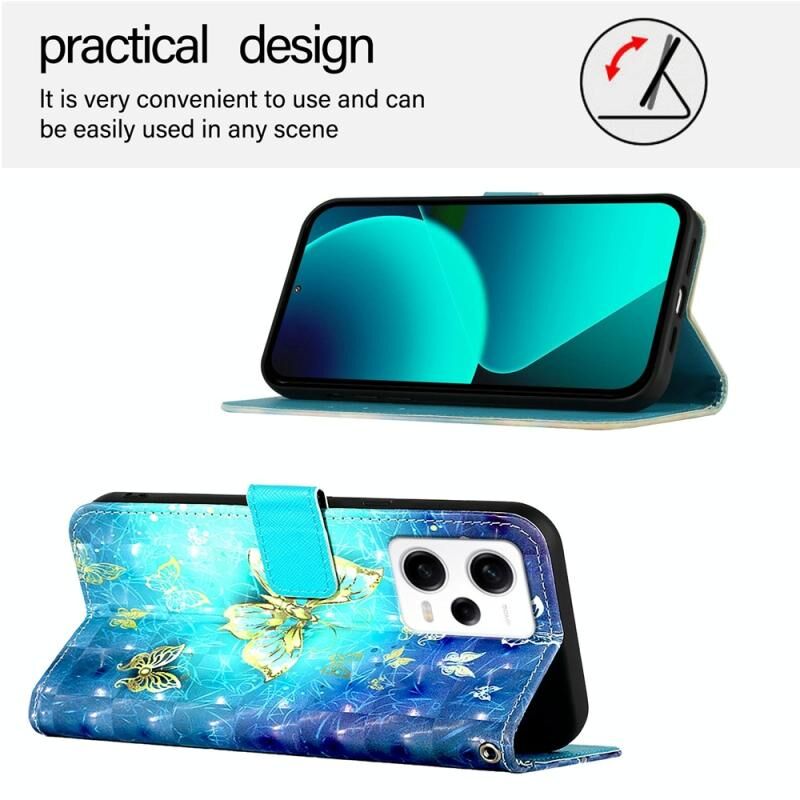 Θήκη τηλεφώνου από δέρμα με οριζόντια αναδίπλωση και τρισδιάστατη ζωγραφική για Redmi Note 12 Pro+ Global (Χρυσή Πεταλούδα)