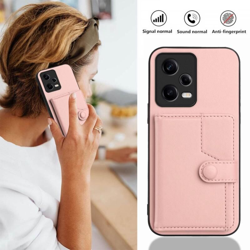 Για Redmi Σημείωση 12 Pro + Παγκόσμια κουμπί κάρτα τσάντα RFID Anti-theft τηλέφωνο υπόθεση (ροζ)