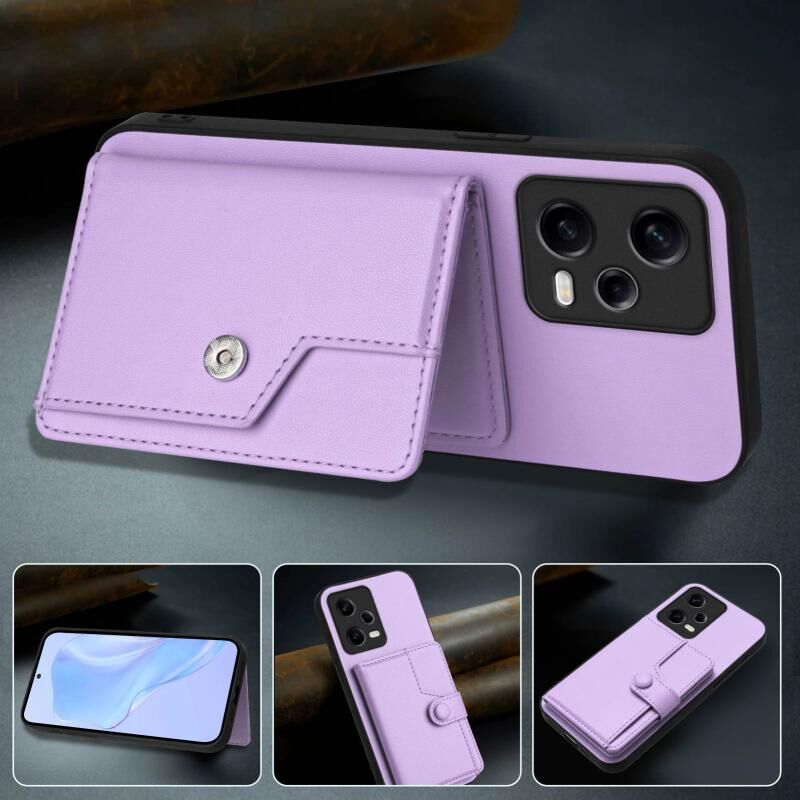 Για Redmi Σημείωση 12 Pro + Παγκόσμια κουμπί κάρτα τσάντα RFID Anti-theft τηλέφωνο υπόθεση (μωβ)