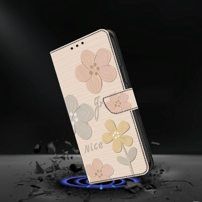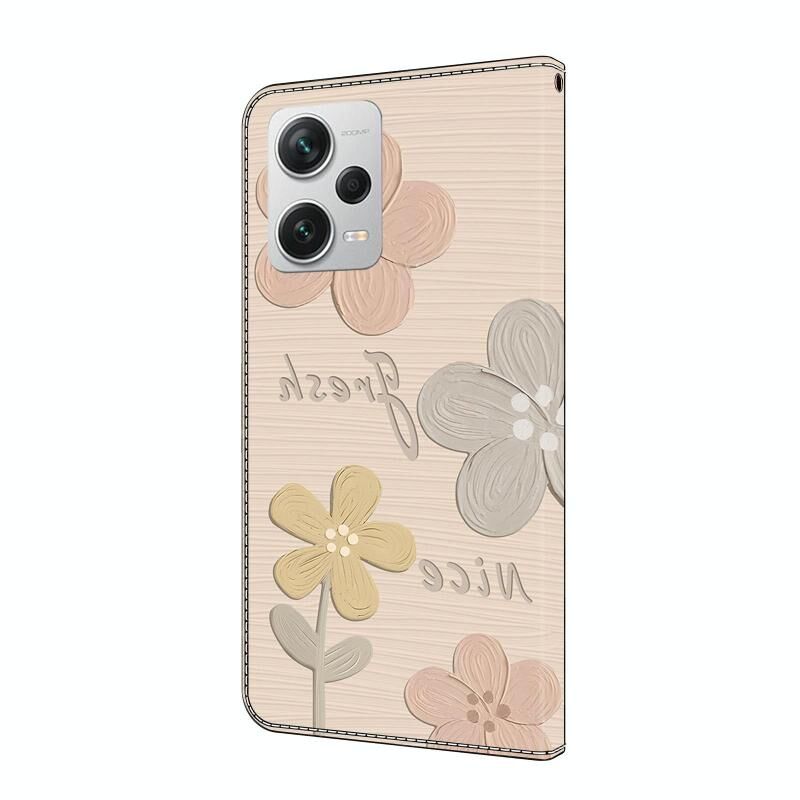 Θήκη τηλεφώνου από φρέσκο ​​βαμμένο δέρμα για Redmi Note 12 Pro+ Global (Μπεζ Λουλούδια)