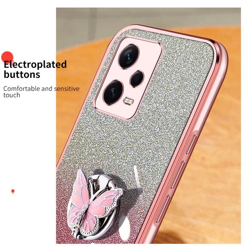 Για Redmi Σημείωση 12 Pro + Παγκόσμια επιμεταλλωμένη διαβάθμιση Glitter πεταλούδα κάτοχος TPU τηλέφωνο υπόθεση (ροζ)