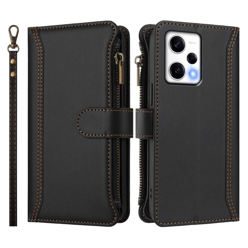 Για Redmi Note 12 Pro+ / Note 12 Explorer Μαγνητικό Κλείσιμο 9 Θήκες Κάρτας Δερμάτινη Θήκη με Φερμουάρ και Λουρί Χεριού (Σκούρο Μπλε)