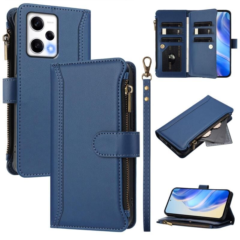 Για Redmi Note 12 Pro+ / Note 12 Explorer Μαγνητικό Κλείσιμο 9 Θήκες Κάρτας Δερμάτινη Θήκη με Φερμουάρ και Λουρί Χεριού (Σκούρο Μπλε)