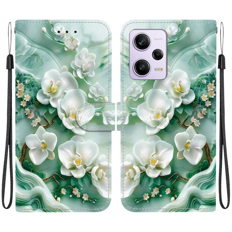 Θήκη τηλεφώνου από δέρμα με πολύχρωμο σχέδιο κρυστάλλινης υφής για Redmi Note 12 Pro / Poco X5 Pro (Λουλούδια νεφρίτη)