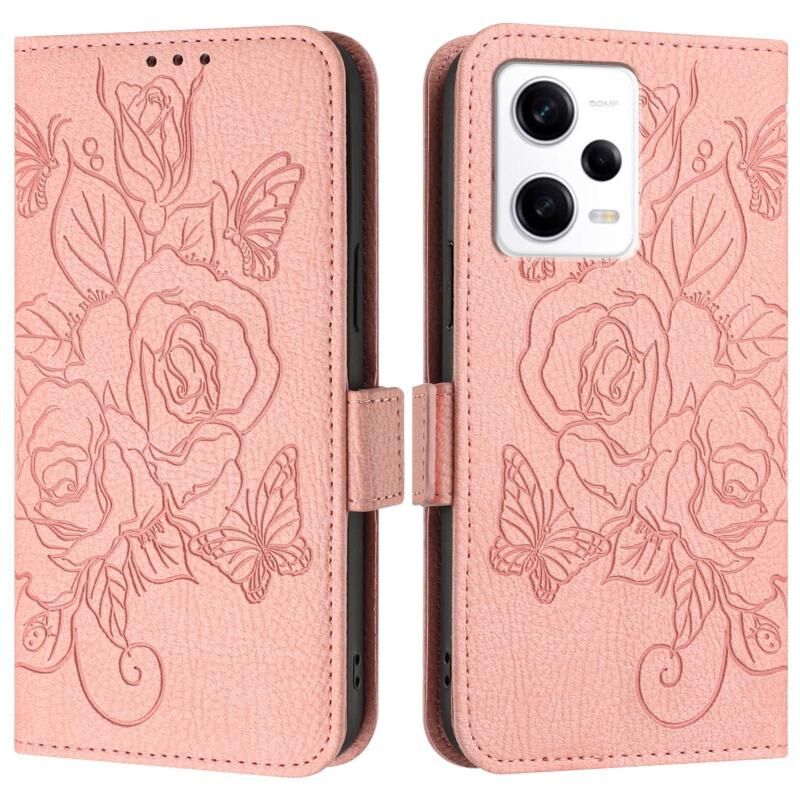 Για Redmi Σημείωση 12 Pro Speed / Σημείωση 12 Pro 5G ανάγλυφο Rose RFID Anti-theft δερμάτινη θήκη τηλεφώνου (ροζ)