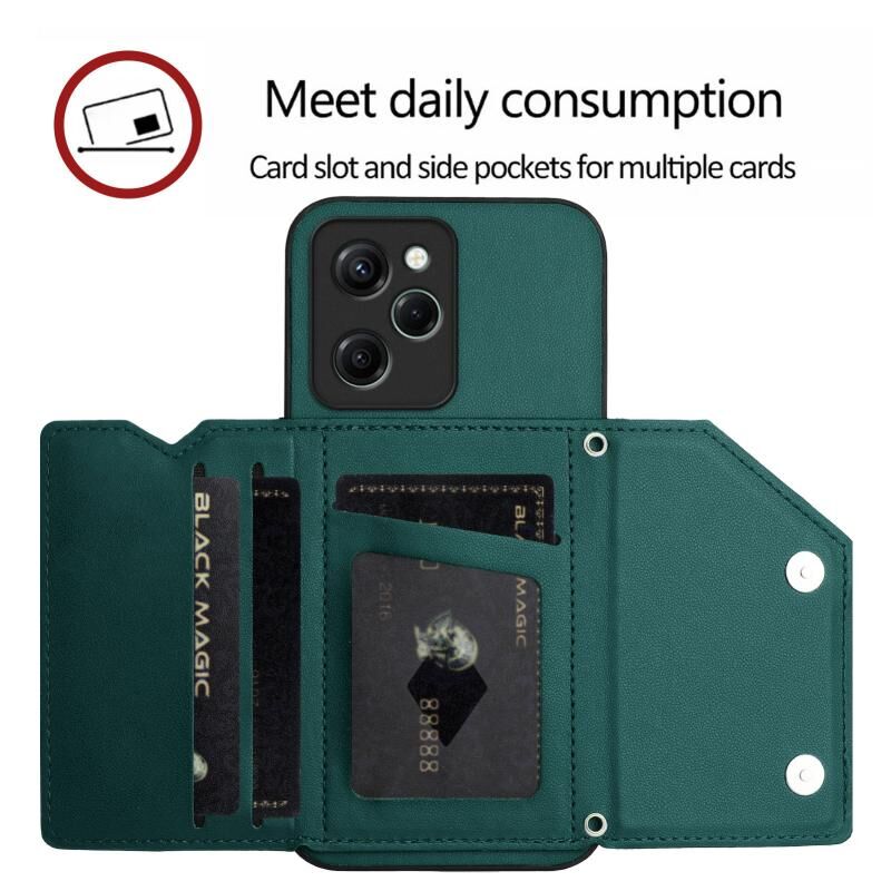 Για Redmi Note 12 Pro Speed Skin Feel τέσσερις υποδοχές καρτών υπόθεση τηλεφώνου με λουράκι καρπού (πράσινο)