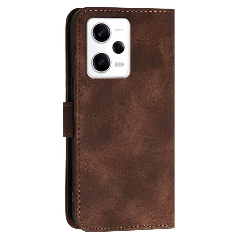 Θήκη τηλεφώνου δερμάτινη με ανάγλυφο σχέδιο πλέγματος και πεταλούδας για Redmi Note 12 Pro YX0080, με κορδόνι (Καφέ)
