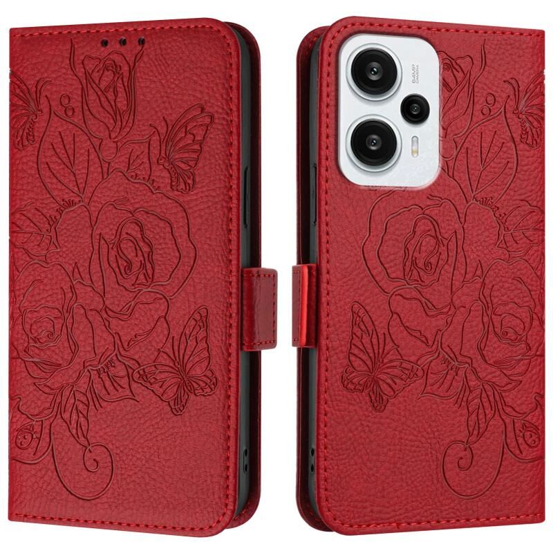 Για Redmi Note 12 Turbo 5G / Xiaomi Poco F5 ανάγλυφο Rose RFID αντικλεπτική δερμάτινη θήκη τηλεφώνου (Κόκκινο)
