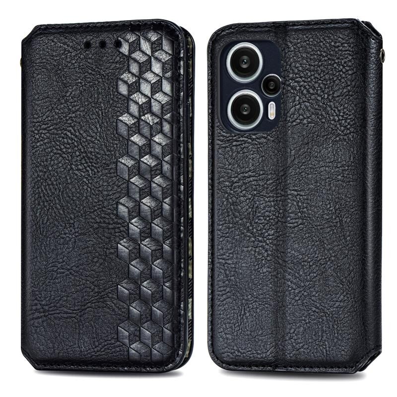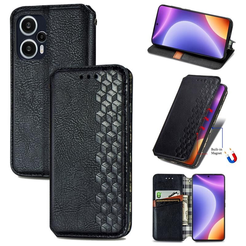 Για Redmi Note 12 Turbo Cubic Grid πιέζεται μαγνητική δερμάτινη θήκη τηλεφώνου (Μαύρο)