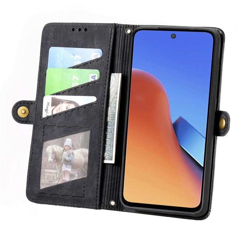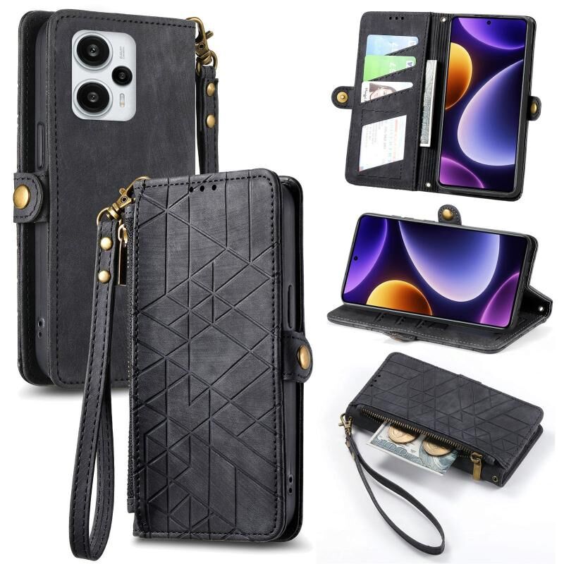 Για Redmi Note 12 Turbo γεωμετρική φερμουάρ πορτοφόλι πλευρά πόρπη δερμάτινη θήκη τηλεφώνου (μαύρο)