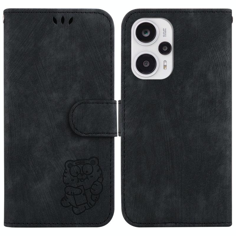 Θήκη δερμάτινη με ανάγλυφο Little Tiger για Redmi Note 12 Turbo (Μαύρο)