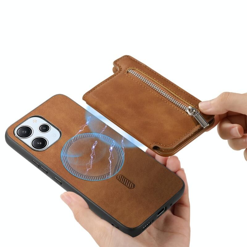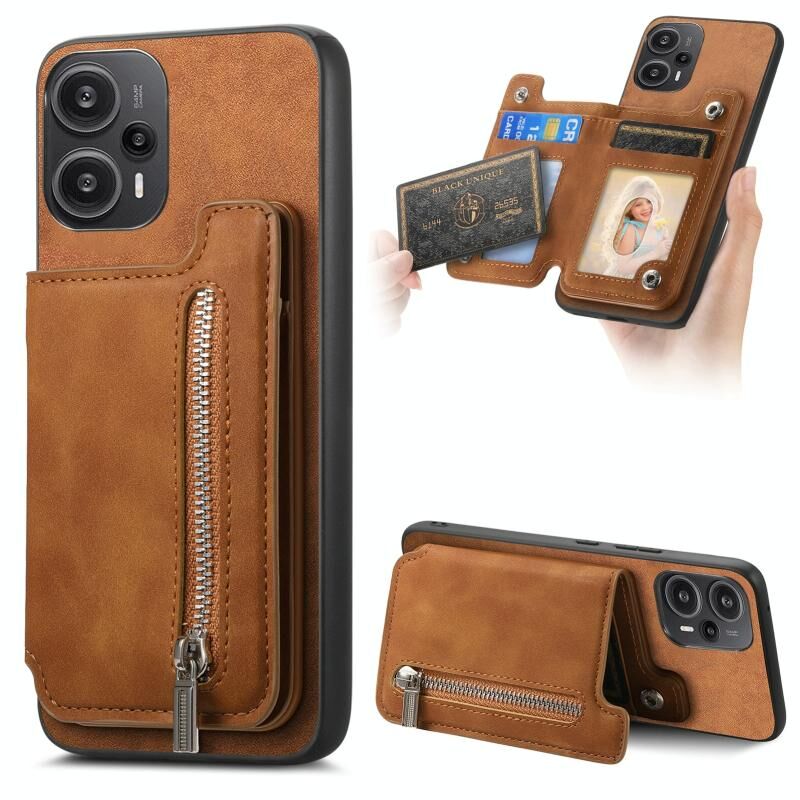 Για Redmi Note 12 Turbo / Poco F5 5G Ρετρό Θήκη Τηλεφώνου με Μαγνητική Στήριξη και Φερμουάρ για Κάρτες (Κίτρινο)