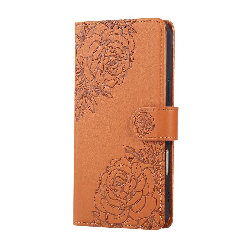 For Redmi Note 12 Turbo / Poco F5 Rose Flower Embossed 3-Card Slots Leather Phone Case(Brown)