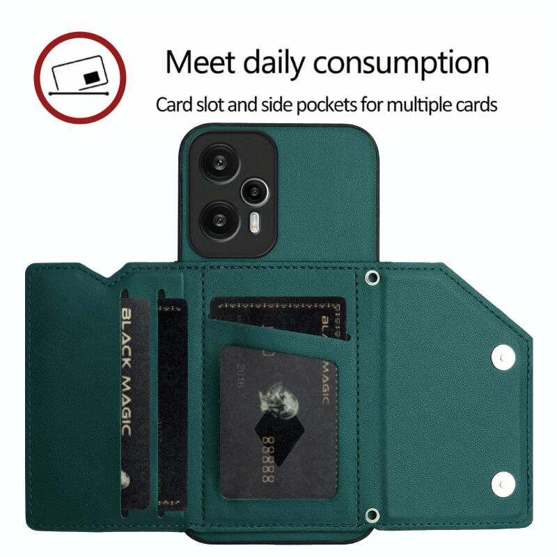 Για Redmi Note 12 Turbo Skin Feel Τέσσερις υποδοχές καρτών υπόθεση τηλεφώνου με λουράκι καρπού (πράσινο)