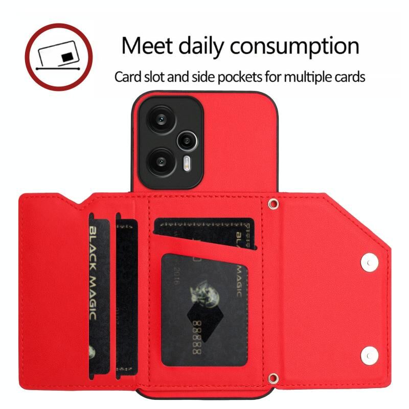 Για Redmi Note 12 Turbo Skin Feel Τέσσερις υποδοχές καρτών υπόθεση τηλεφώνου με λουράκι καρπού (κόκκινο)