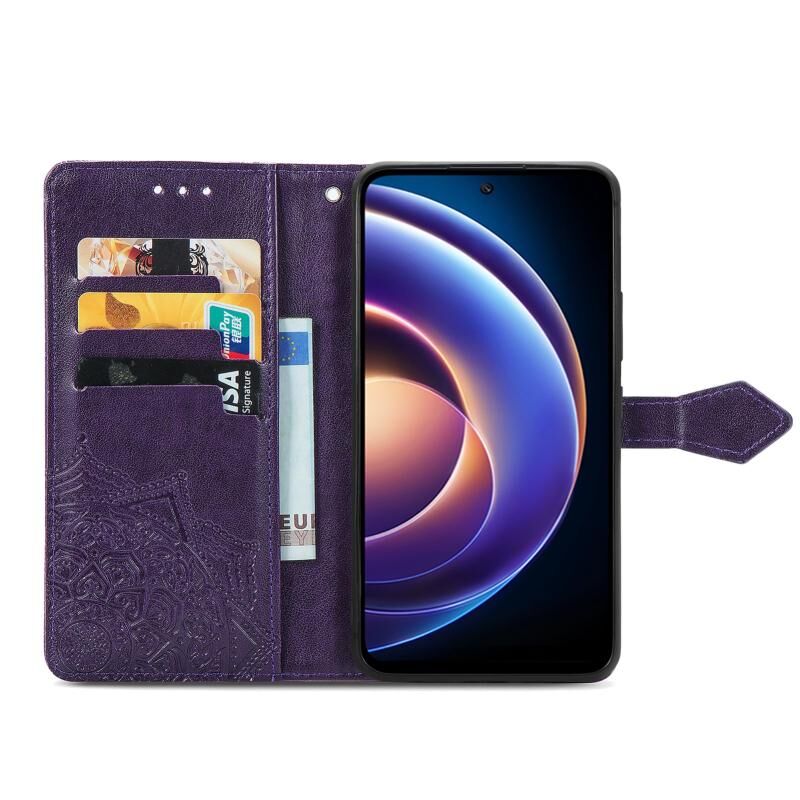 Για Redmi Σημείωση 12R Mandala λουλούδι ανάγλυφο δερμάτινη θήκη τηλεφώνου (μωβ)