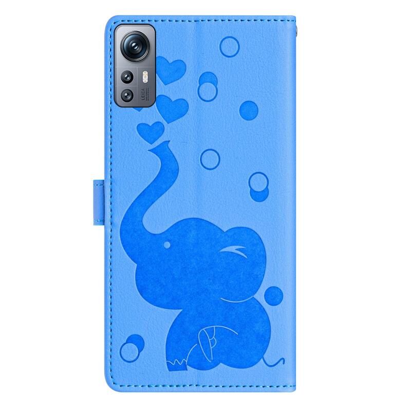 Θήκη τηλεφώνου από δέρμα με ανάγλυφο σχέδιο καρτούν ελέφαντα για Redmi Note 12S 4G (Μπλε)
