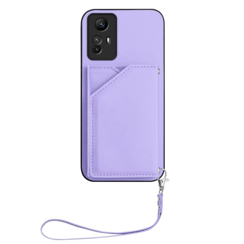 Για Redmi Σημείωση 12S 4G Παγκόσμια αίσθηση δέρματος Τέσσερις υποδοχές καρτών υπόθεση τηλεφώνου με λουράκι καρπού (Μωβ)