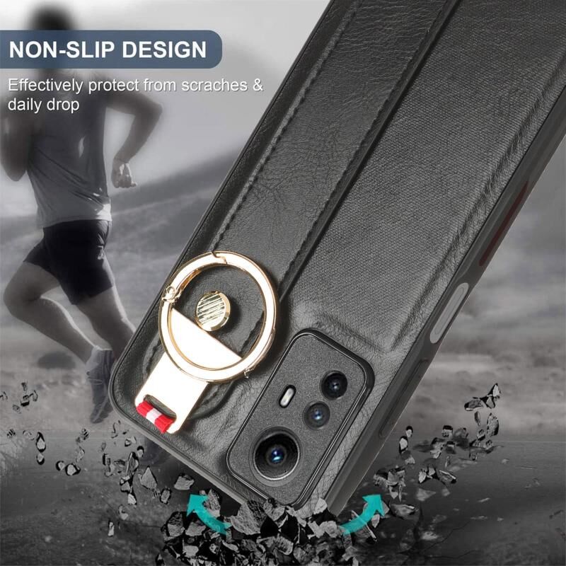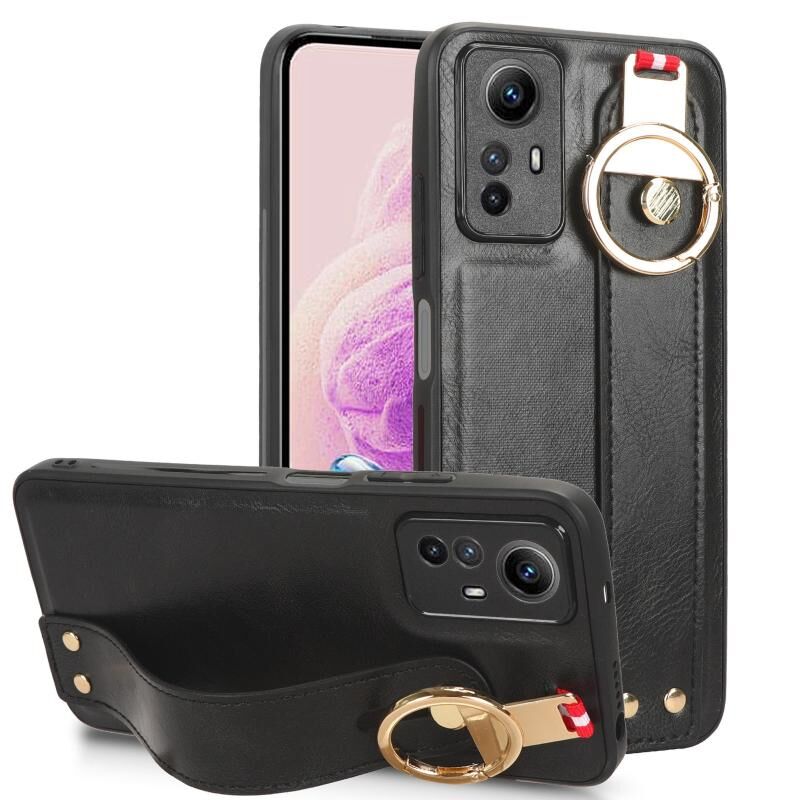 Για Redmi Note 12S 4G Wristband δέρμα πίσω τηλέφωνο υπόθεση (μαύρο)