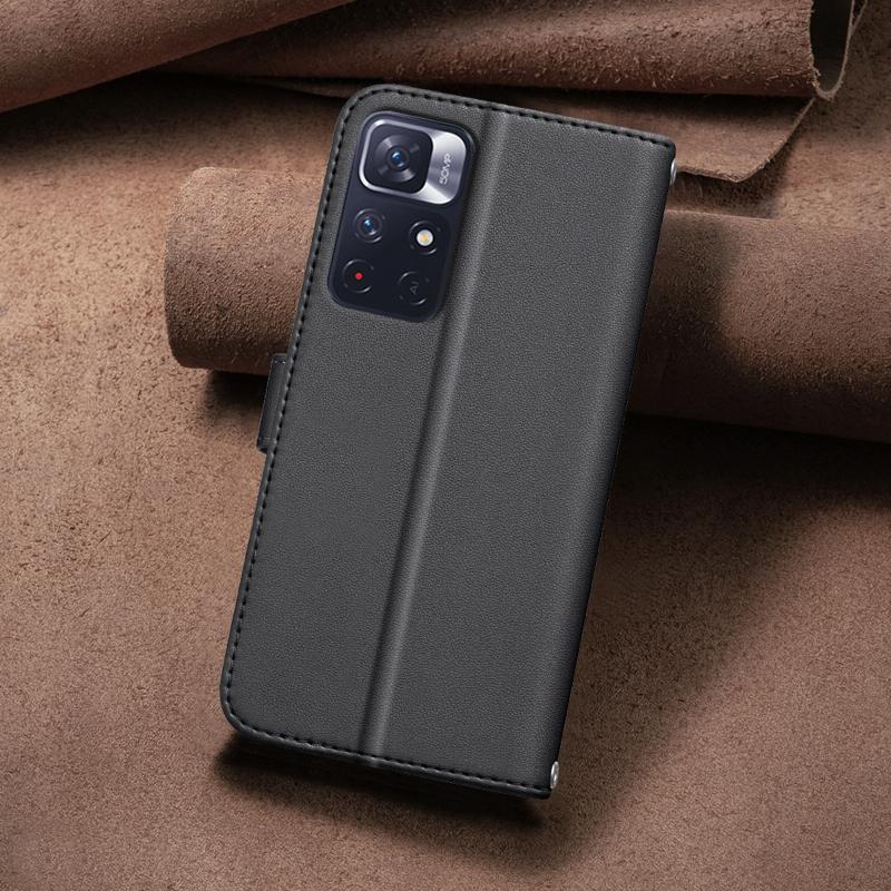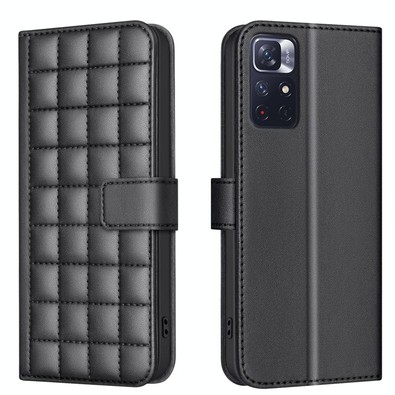 Θήκη δερμάτινη με τετράγωνο σχέδιο για Redmi Note 12S Global (Μαύρο)