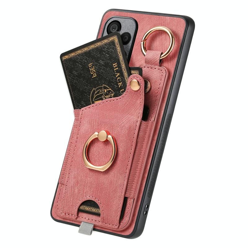 Για Redmi Σημείωση 12S Ρετρό δέρμα αίσθηση δαχτυλίδι τσάντα κάρτα τηλέφωνο υπόθεση με Hang Loop (ρόζ)