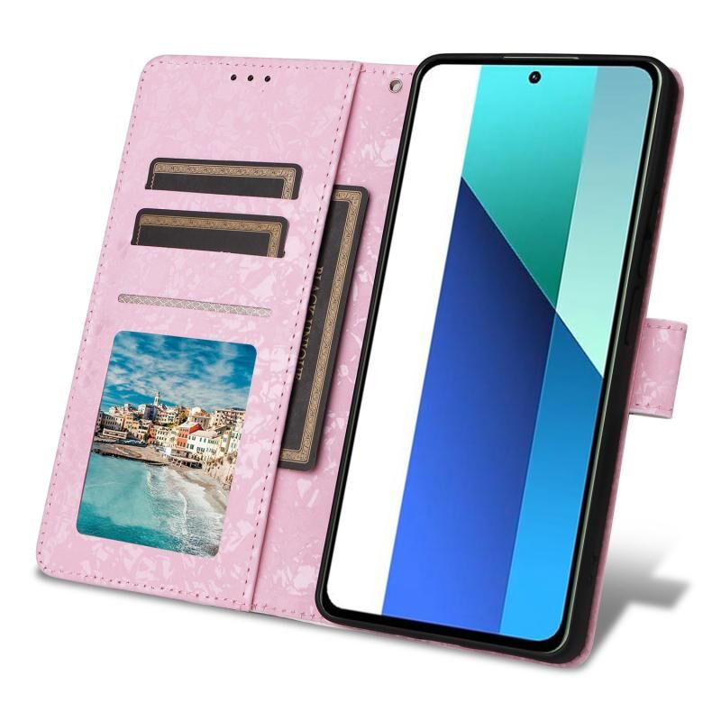 Θήκη τηλεφώνου από δέρμα με τεχνολογία RFID και ανάγλυφο σχέδιο (Flowers World) για Redmi Note 13 4G.