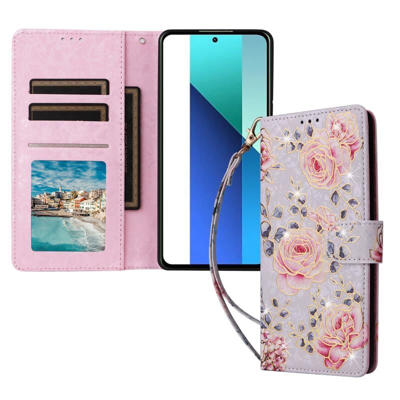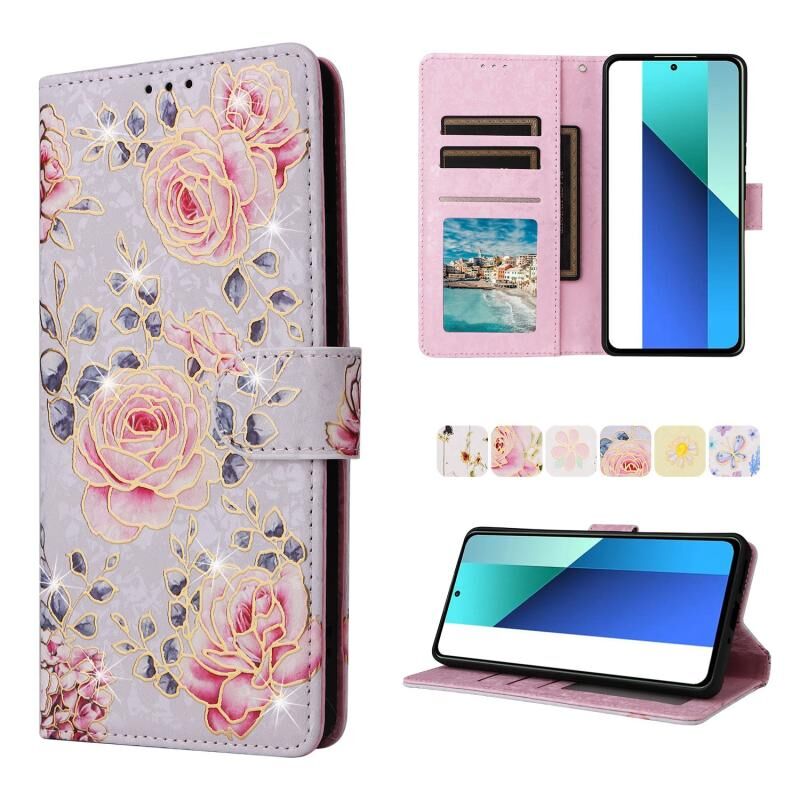 Θήκη τηλεφώνου από δέρμα με τεχνολογία RFID και ανάγλυφο σχέδιο (Pastoral Rose) για Redmi Note 13 4G.