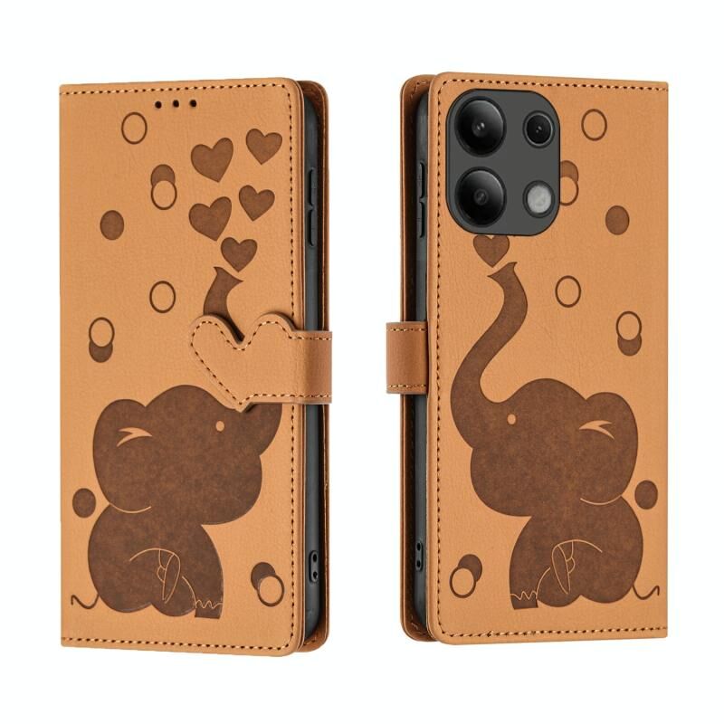 Θήκη τηλεφώνου από δέρμα με ανάγλυφο σχέδιο καρτούν ελέφαντα για Redmi Note 13 4G (Μπλε)