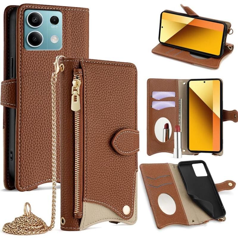 Για Redmi Note 13 4G Crossbody αλυσίδα Fishtail Litchi δέρμα τηλέφωνο υπόθεση (καφέ)