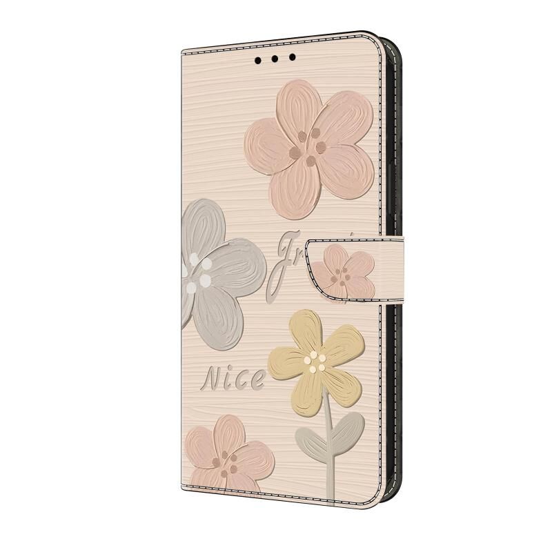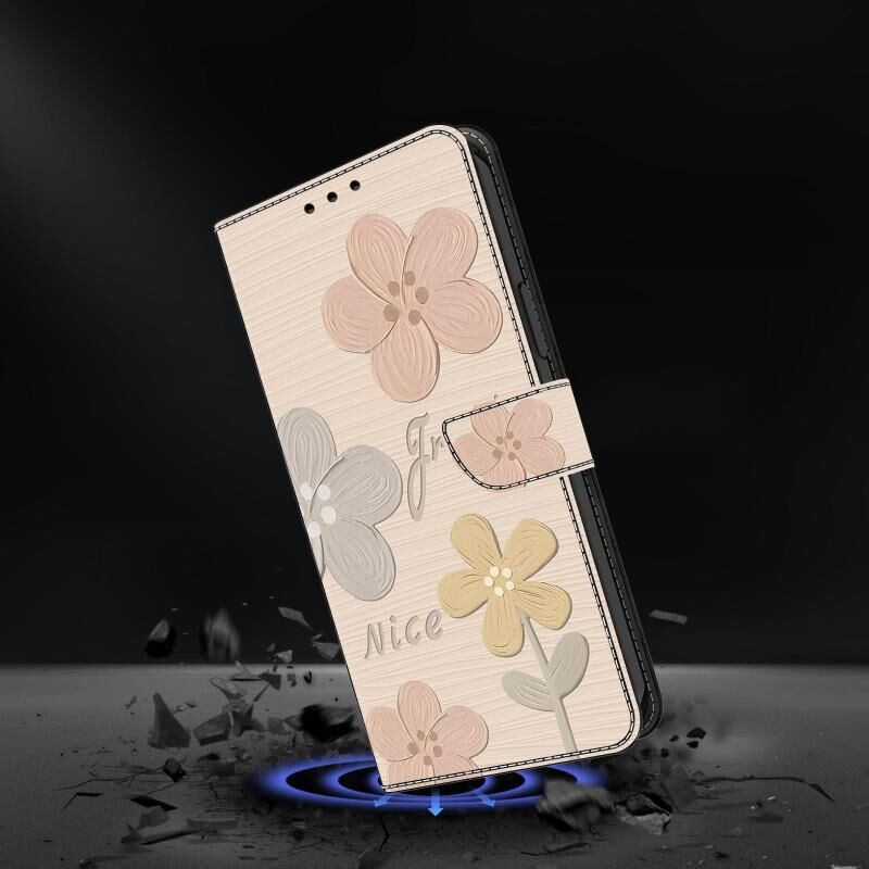 Θήκη τηλεφώνου από φρεσκοβαμμένο δέρμα για Redmi Note 13 4G (Μπεζ Λουλούδια)
