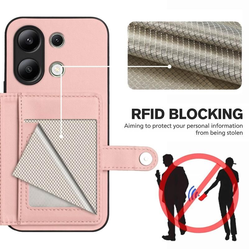 Για Redmi Σημείωση 13 4G Παγκόσμια κάρτα κουμπί Redmi Σημείωση 13 4G Παγκόσμια κάρτα τσάντα RFID Anti-theft τηλέφωνο υπόθεση (ροζ)