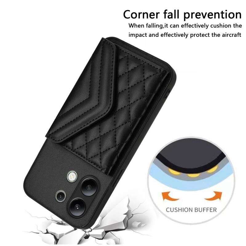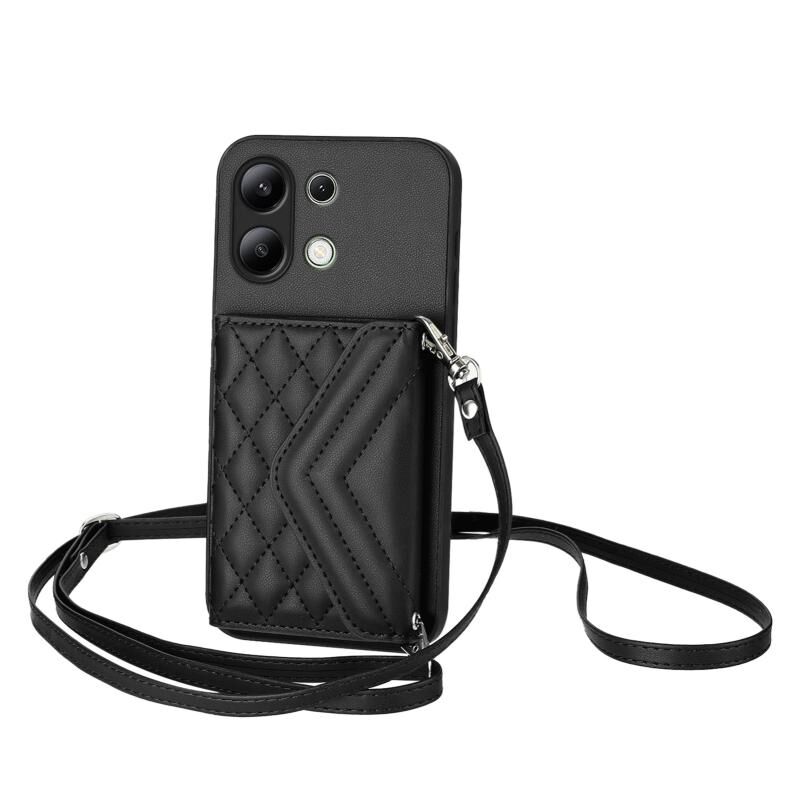Για Redmi Σημείωση 13 4G Παγκόσμια Rhombic Υφή κάρτα τσάντα RFID υπόθεση τηλεφώνου με μακρύ κορδόνι (Μαύρο)