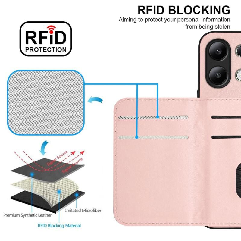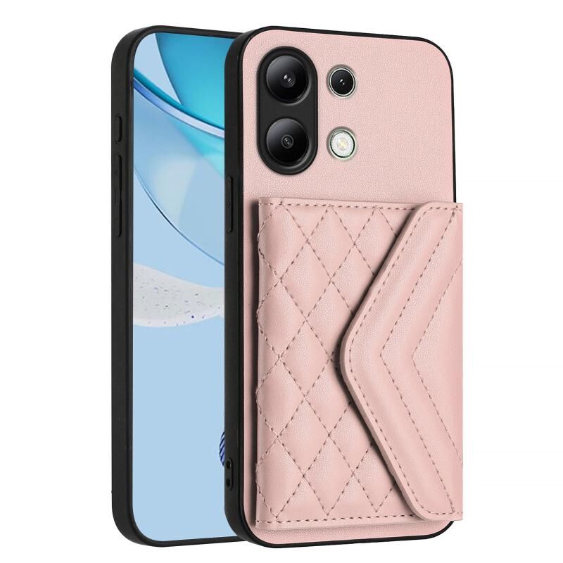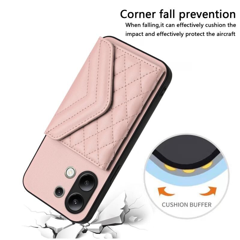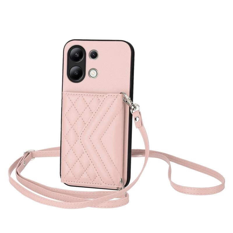 Για Redmi Σημείωση 13 4G Παγκόσμια Rhombic Υφή κάρτα τσάντα RFID υπόθεση τηλεφώνου με μακρύ κορδόνι (Rose Gold)