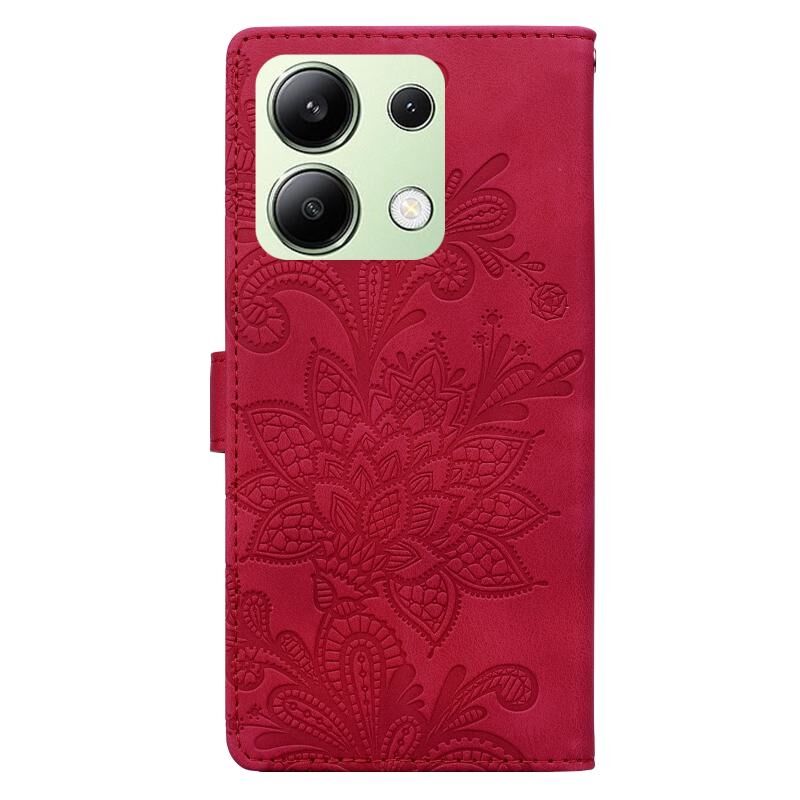 Θήκη τηλεφώνου για Redmi Note 13 4G με δαντελένιο floral ανάγλυφο, μαγνητικό κούμπωμα και λουρί καρπού (Πράσινο)