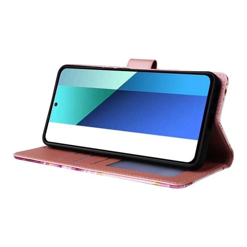 Θήκη τηλεφώνου από δέρμα με ραφές και μαρμάρινη επίστρωση για Redmi Note 13 4G (Μαύρο)