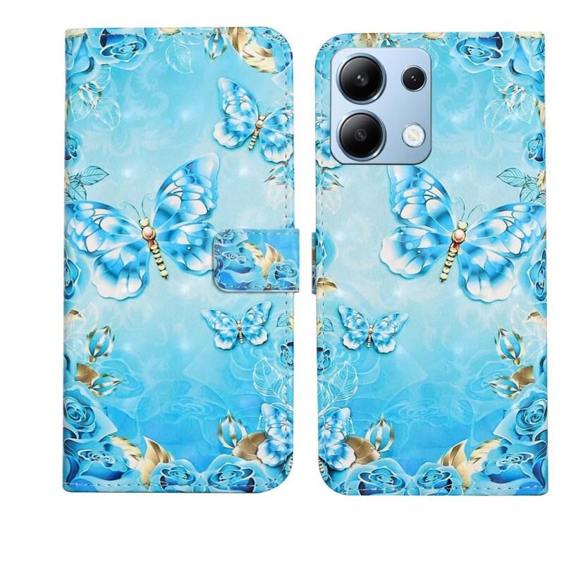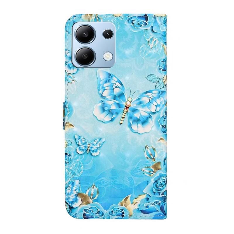 Θήκη τηλεφώνου δερμάτινη με ανάγλυφο σχέδιο λαδιού 3D για Redmi Note 13 4G (Μπλε Πεταλούδες)