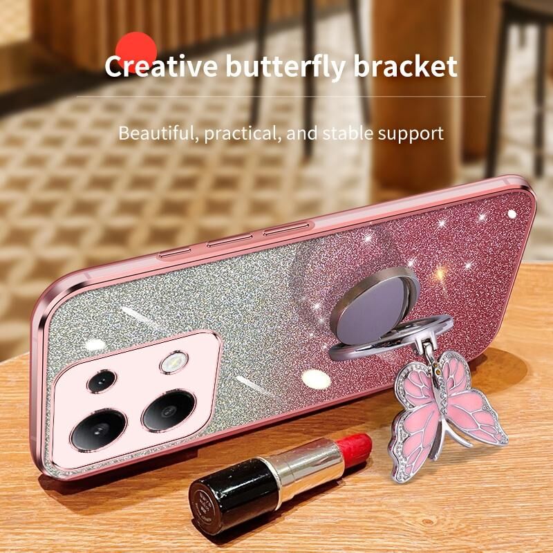 Για Redmi Σημείωση 13 4G επιμεταλλωμένο διαβάθμιση Glitter πεταλούδα κάτοχος TPU τηλέφωνο υπόθεση (μαύρο)