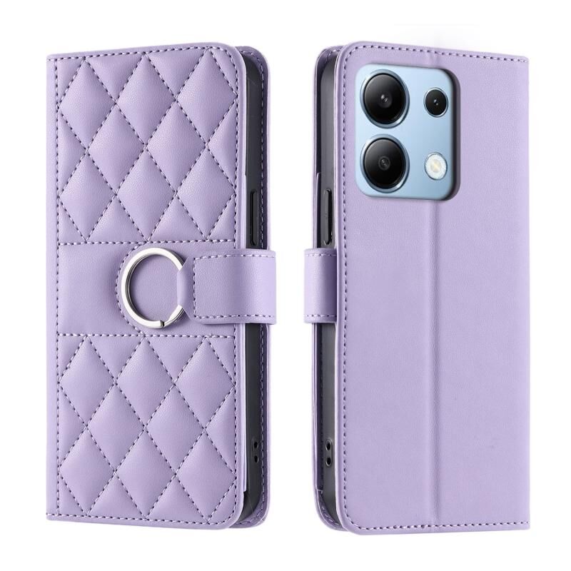 Για Redmi Note 13 4G δαχτυλίδι πόρπη Rhombic δέρμα τηλέφωνο υπόθεση (Μωβ)