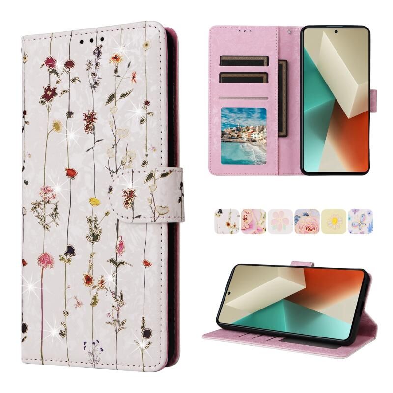 Θήκη τηλεφώνου από δέρμα με τεχνολογία RFID και ανάγλυφο σχέδιο (Flowers World) για Redmi Note 13 5G.