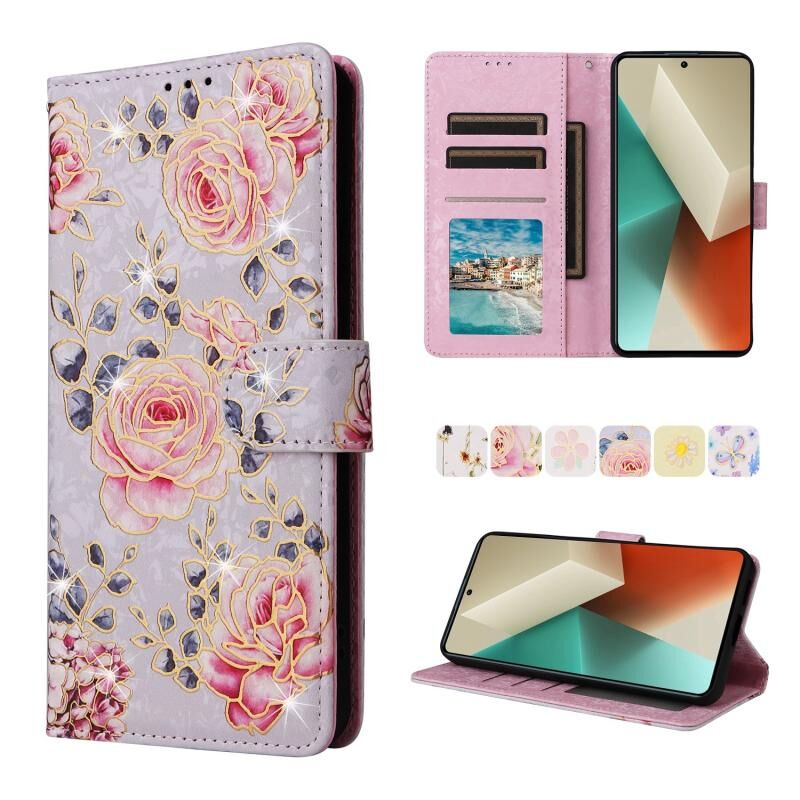 Θήκη τηλεφώνου από δέρμα με τεχνολογία RFID και ανάγλυφο σχέδιο (Pastoral Rose) για Redmi Note 13 5G.