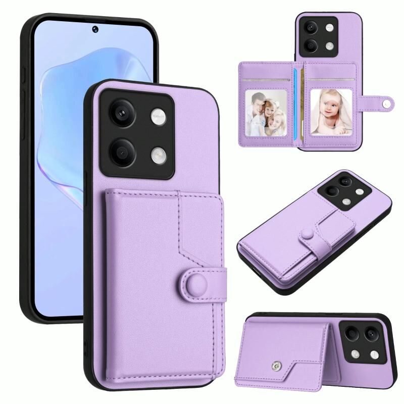 Για Redmi Σημείωση 13 5G Button Card Bag RFID Anti-theft τηλέφωνο υπόθεση (μωβ)