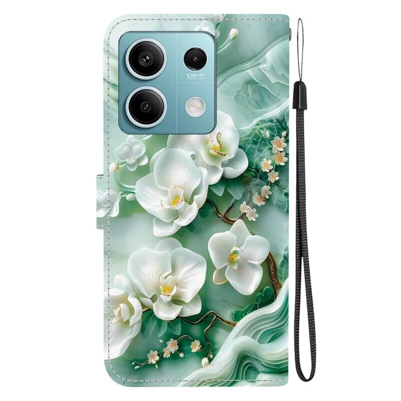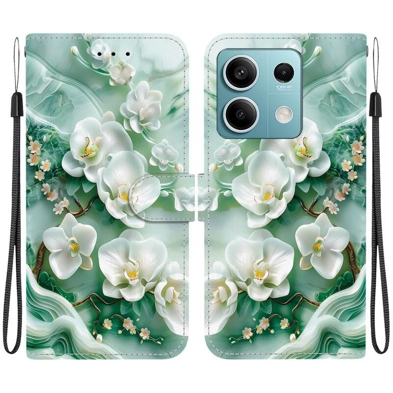 Θήκη τηλεφώνου από δέρμα με πολύχρωμη σχεδίαση κρυστάλλινης υφής για Redmi Note 13 5G (Λουλούδια νεφρίτη)