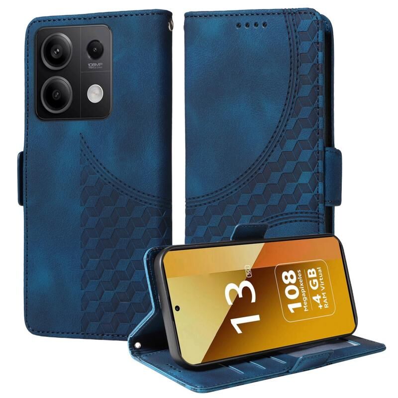 For Redmi Note 13 5G Embossed Rhombus Starry Leather Phone Case(Blue)
