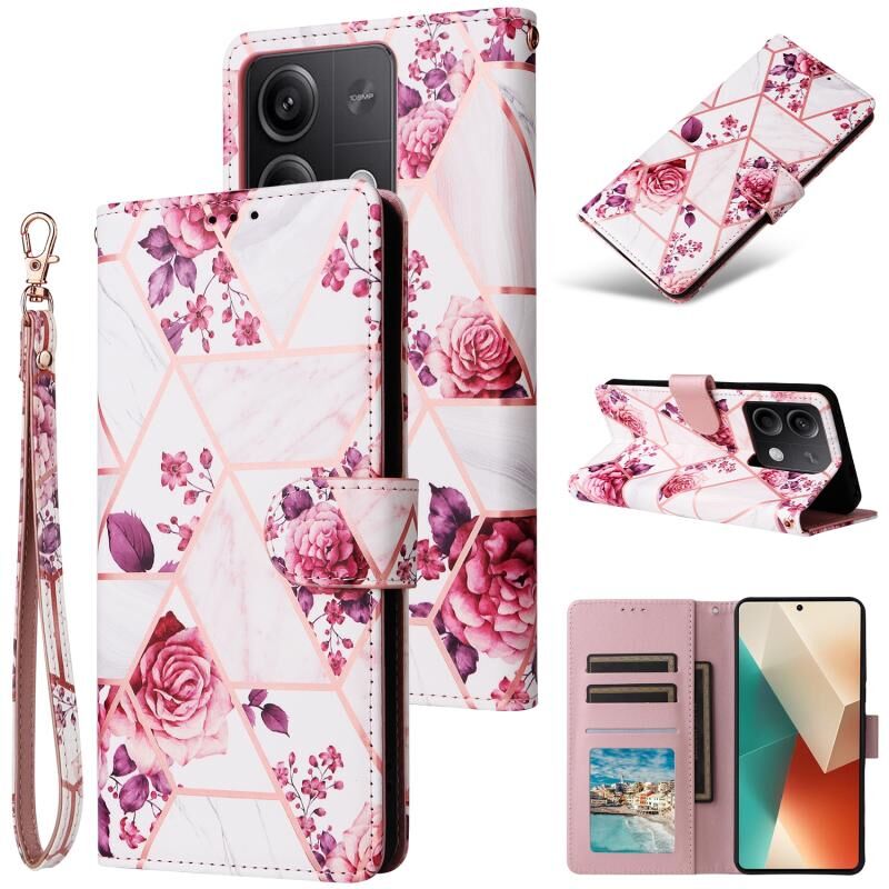 Θήκη τηλεφώνου από δέρμα με ραφή μαρμάρου και μπρονζέ για Redmi Note 13 5G Global (Ροζ χρυσός)