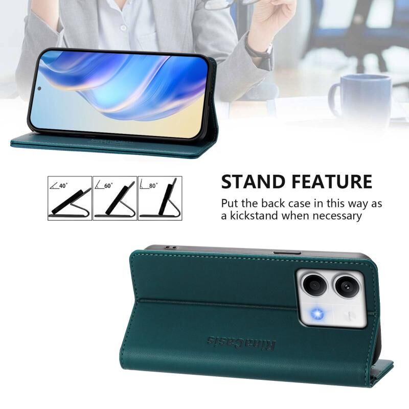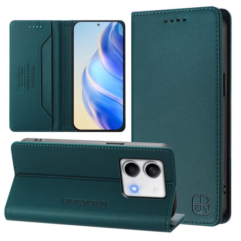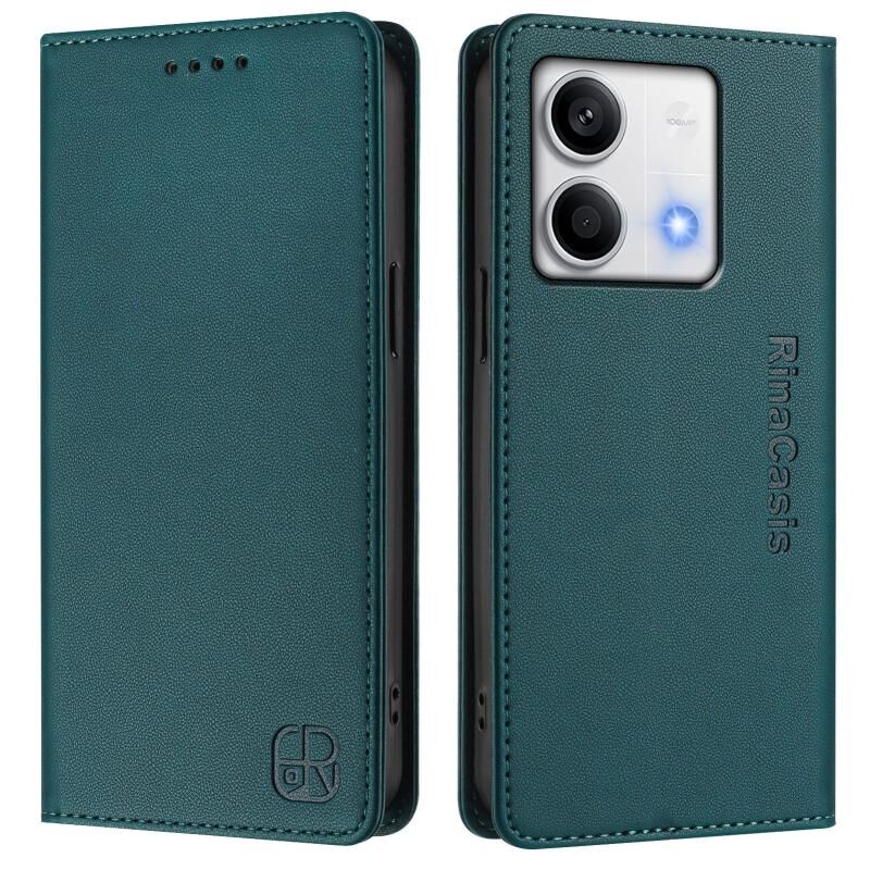 Θήκη τηλεφώνου από δέρμα με μαγνητική απορρόφηση και διπλή πτύχωση για Redmi Note 13 5G Global RC01 (Σκούρο πράσινο)