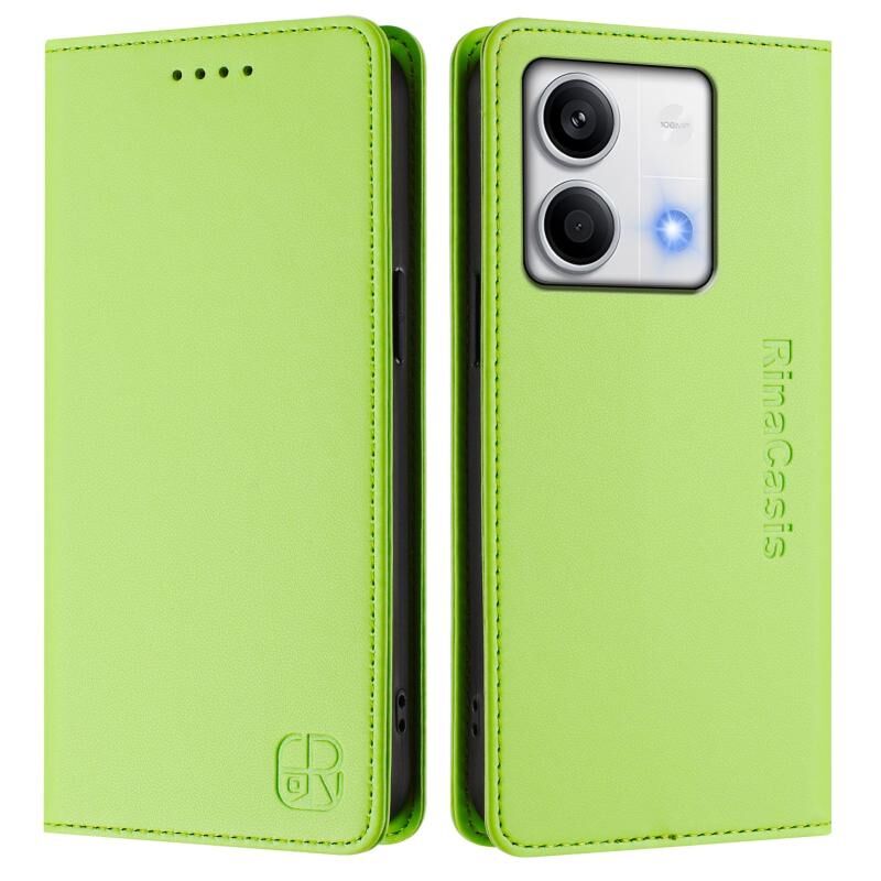 Θήκη τηλεφώνου από δέρμα με μαγνητική απορρόφηση και διπλή πτύχωση για Redmi Note 13 5G Global RC01 (Πράσινο του γρασιδιού)