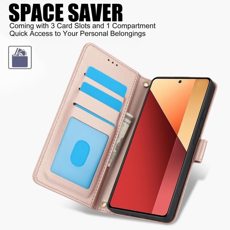 Για Redmi Σημείωση 13 5G Παγκόσμια αίσθηση δέρματος Pure Color Card Slots δέρμα τηλέφωνο υπόθεση με διπλό κορδόνι (Ροζ χρυσός)