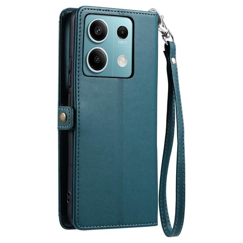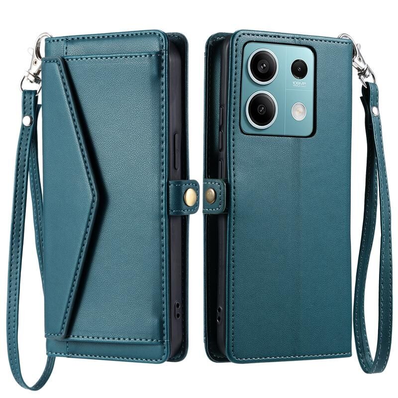 Για Redmi Σημείωση 13 5G Παγκόσμια πορτοφόλι πολλαπλών καρτών Slot Δερμάτινη θήκη τηλεφώνου με κορδόνι (πράσινο)